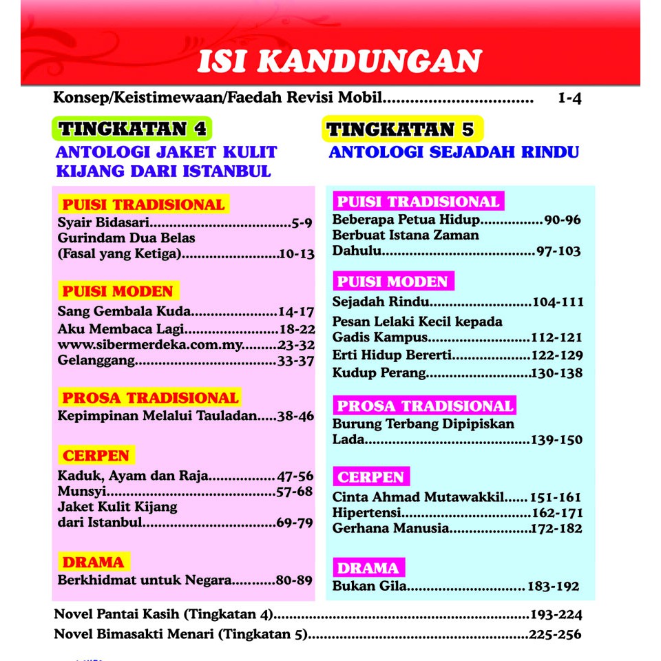 8:00 pg antologi tingkatan 2, cerpen 16 comments kupasan cerpen: Menuai emas (salina ibrahim) sinopsis. Di bawah dikongsikan nota penting yang terkandung dalam cerpen jaket kulit kijang dari istanbul : Sinopsis, tema, persoalan, nilai, pengajaran. Cerpen jaket kulit kijang dari istanbul : Novel leftenan adnan wira bangsa (k4). 6:39 ptg antologi tingkatan 1 25 comments kupasan cerpen: Karya ini telah memenangi tempat ketiga dalam pertandingan novel remaja hadiah sastera kumpulan utusan (exxonmobil) tahun 2002 dan dipilih sebagai salah satu karya komsas menengah rendah. Sinopsis, tema, persoalan, nilai, pengajaran. Komponen sastera dan novel bm / bahasa melayu.